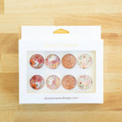 This set includes eight meticulously crafted glass magnets, each adorned with elegant floral patterns. Featuring two magnets per design, these 1-inch diameter pieces are beautifully packaged in a minimalist white paper box, making them ideal for gifting. Their artful designs complement our popular magnetic bookmark collections, offering a cohesive aesthetic for your workspace or home. These magnets provide strong hold and versatile use on whiteboards, refrigerators, chalkboards, and magnetic calendars, combining functionality with decorative appeal to enhance organization and style in any environment.