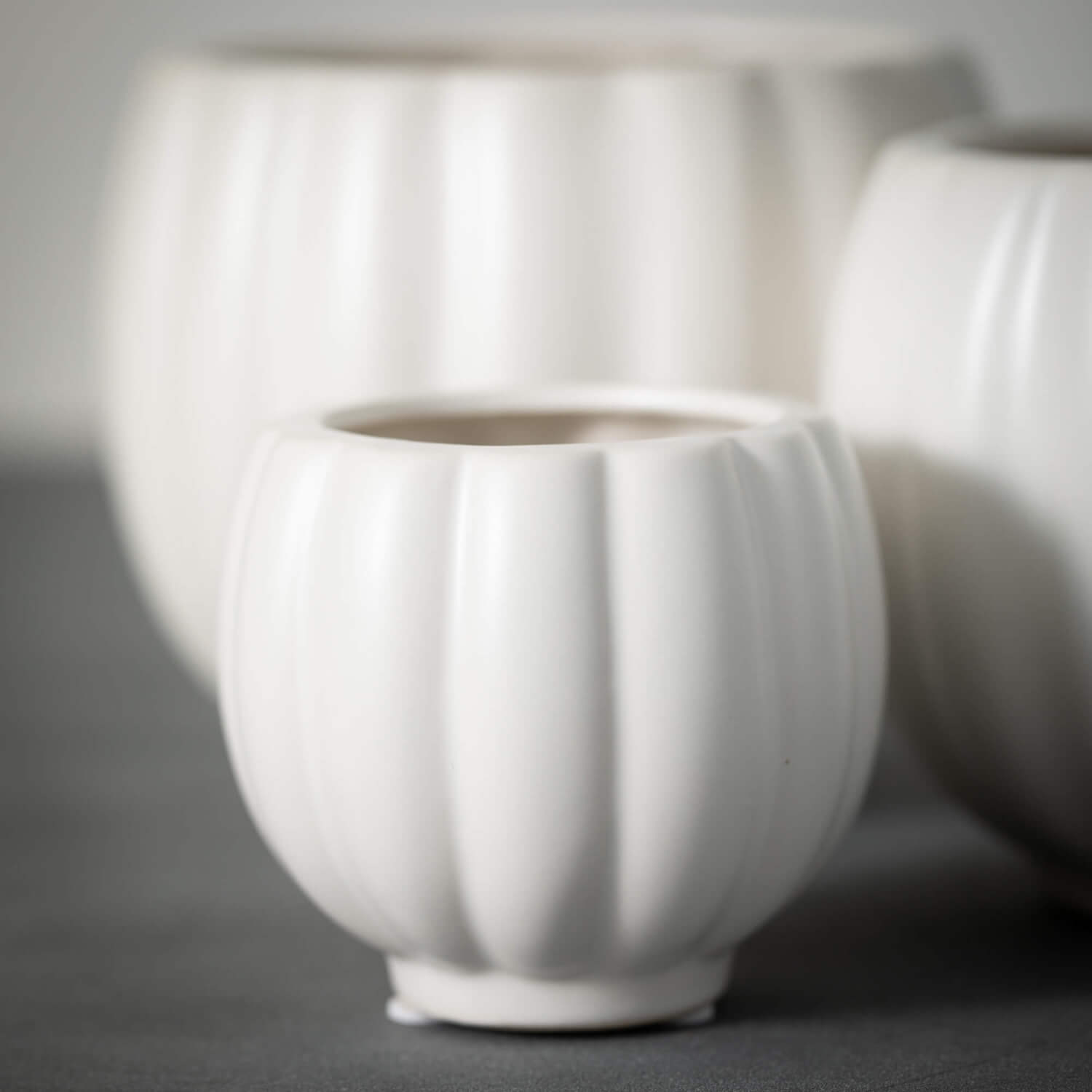 Try an organically shaped set of containers to bring a natural element into your space. Substantial but refined, this set is sure to hold any arrangement with grace. The wide ribbing on the outer surface gives off a sleek and sophisticated vibe.