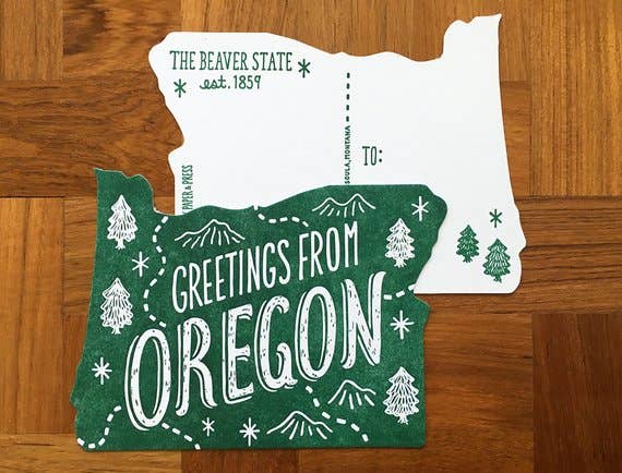 Oregon Watercolor Illustrated Map | Travel Postcard