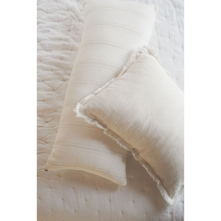 This linen is so soft- you won’t believe its linen! This yarn has a slight nub which gives it a beautiful natural texture. Edges have a self-fringe on all sides. 100% Linen (pre-washed). Zipper.