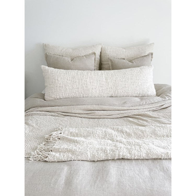 The Cozy Cotton Ivory Boucle Body Pillow is made using soft cotton slub yarns that you'll love to snuggle with. This size pillow can be used as a very comfortable body and back support pillow and fits on a Queen and King Size bed. 100% Cotton Slub. Machine Wash with like colors.