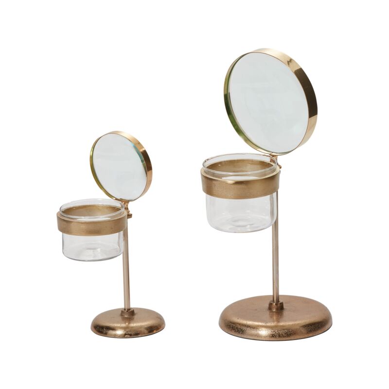 Brass, glass, and undeniable elegance—the Spyglass Pot transforms plant care into an interactive experience. This striking piece combines a functional glass planter with a gold-finished metal stand and integrated magnifying glass, making it perfect for plant enthusiasts who want to monitor soil conditions and root development up close. Whether you're propagating delicate cuttings or nurturing mature plants, the transparent design lets you observe every stage of growth. The magnifying lens reveals intricate details often missed by the naked eye, helping you catch potential issues early and adjust care accordingly. Beyond its practical benefits, the Spyglass Pot serves as a conversation-starting décor element—a sophisticated blend of botanical science and artistic design that elevates any shelf, desk, or windowsill. Ideal for collectors, educators, and anyone who appreciates the marriage of form and function.