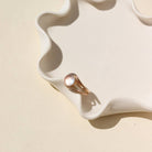 Featuring a captivating moonstone at its center, this ring catches the light with every turn, revealing soft flashes of iridescence. Set in a sleek, sculptural band, it’s designed to feel both delicate and bold.