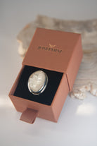 Elegant and timeless, this Mother of Pearl ring is set in our signature Josephine Jewelry Traveler's Setting and finished with a polished 925 sterling silver band. The soft iridescence of the stone catches the light beautifully, offering a subtle yet captivating glow. Each ring comes nestled in a custom Josephine Jewelry keepsake box, along with a polishing cloth to help maintain its natural luster.