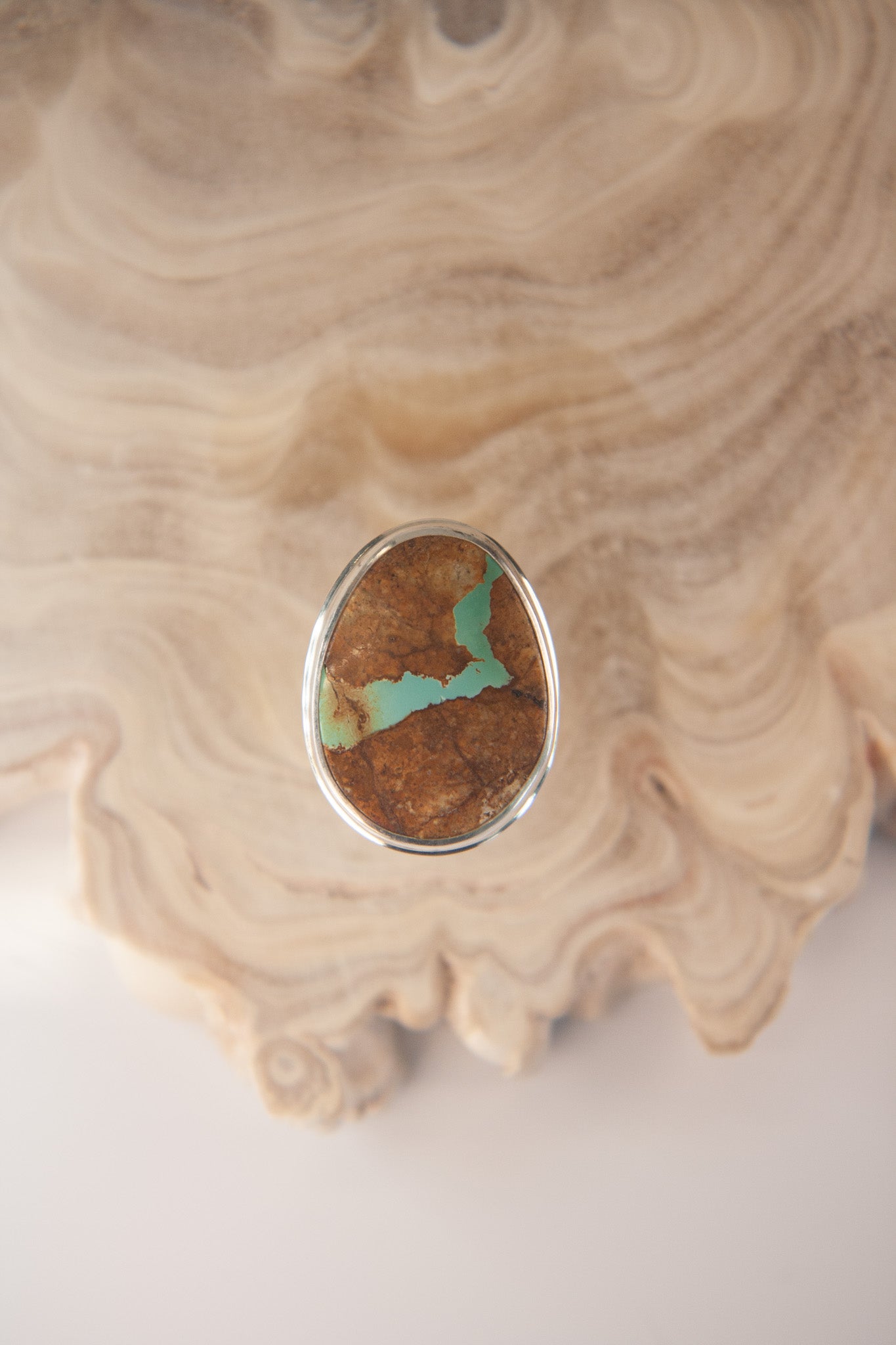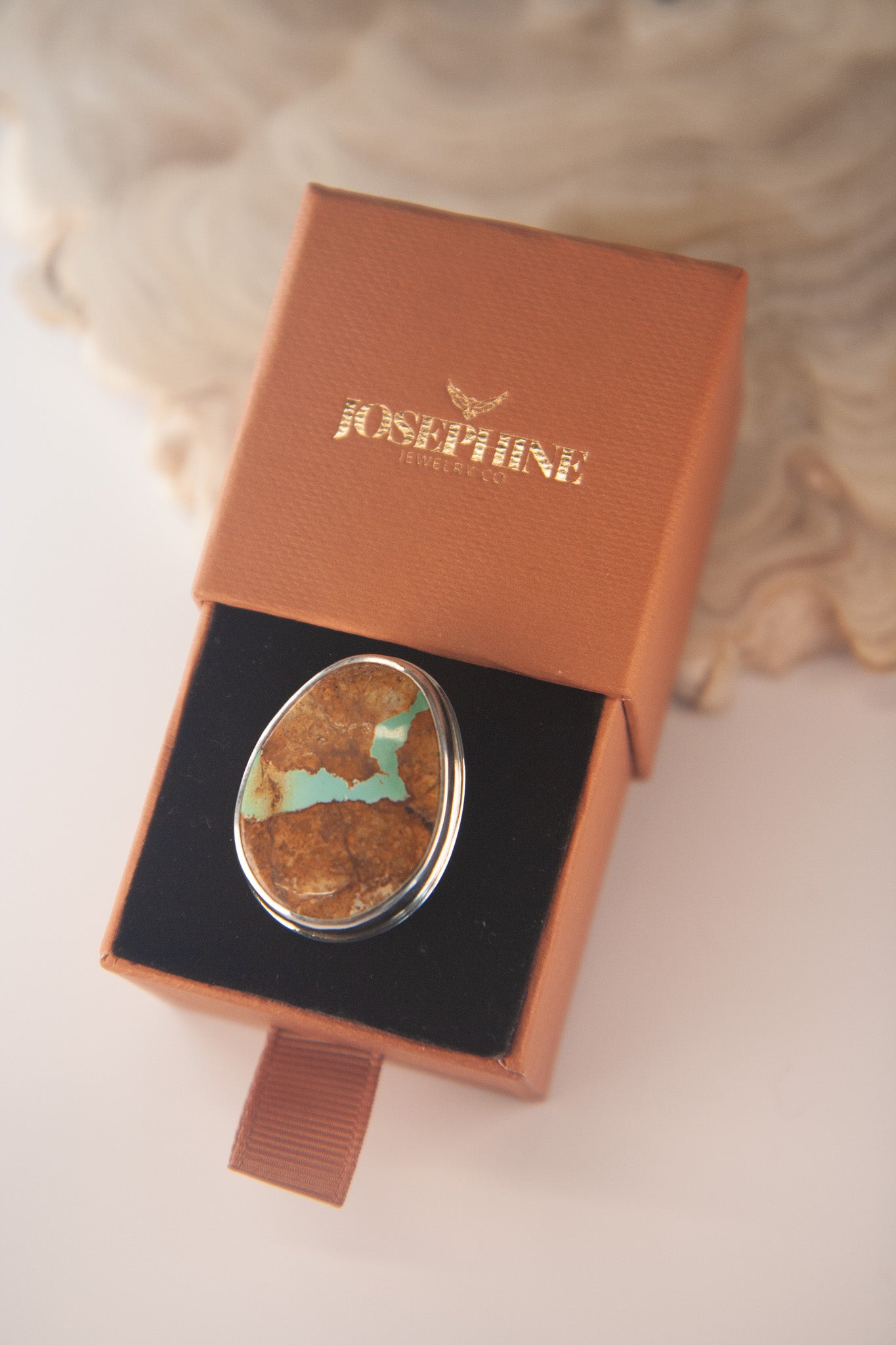 This Royston Ribbon Turquoise ring is set in our signature Josephine Jewelry Traveler's Setting and finished with a polished 925 sterling silver band. Known for its striking veins of turquoise running through golden brown matrix, this stone captures the natural artistry and rare beauty that makes turquoise jewelry so beloved. Each ring comes nestled in a custom Josephine Jewelry keepsake box, along with a polishing cloth to help maintain its lasting shine.