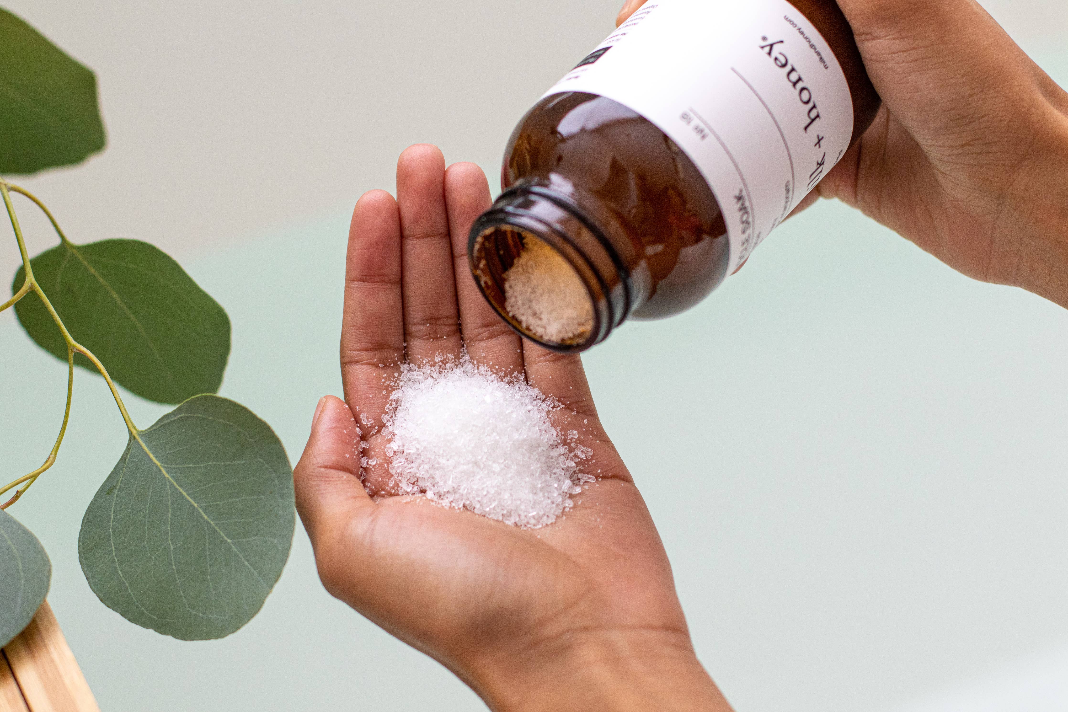 Directions: Pour one-quarter to one-third cup into a hot bath. Add a little more for extra sore muscles. Sit back and enjoy your happy place.