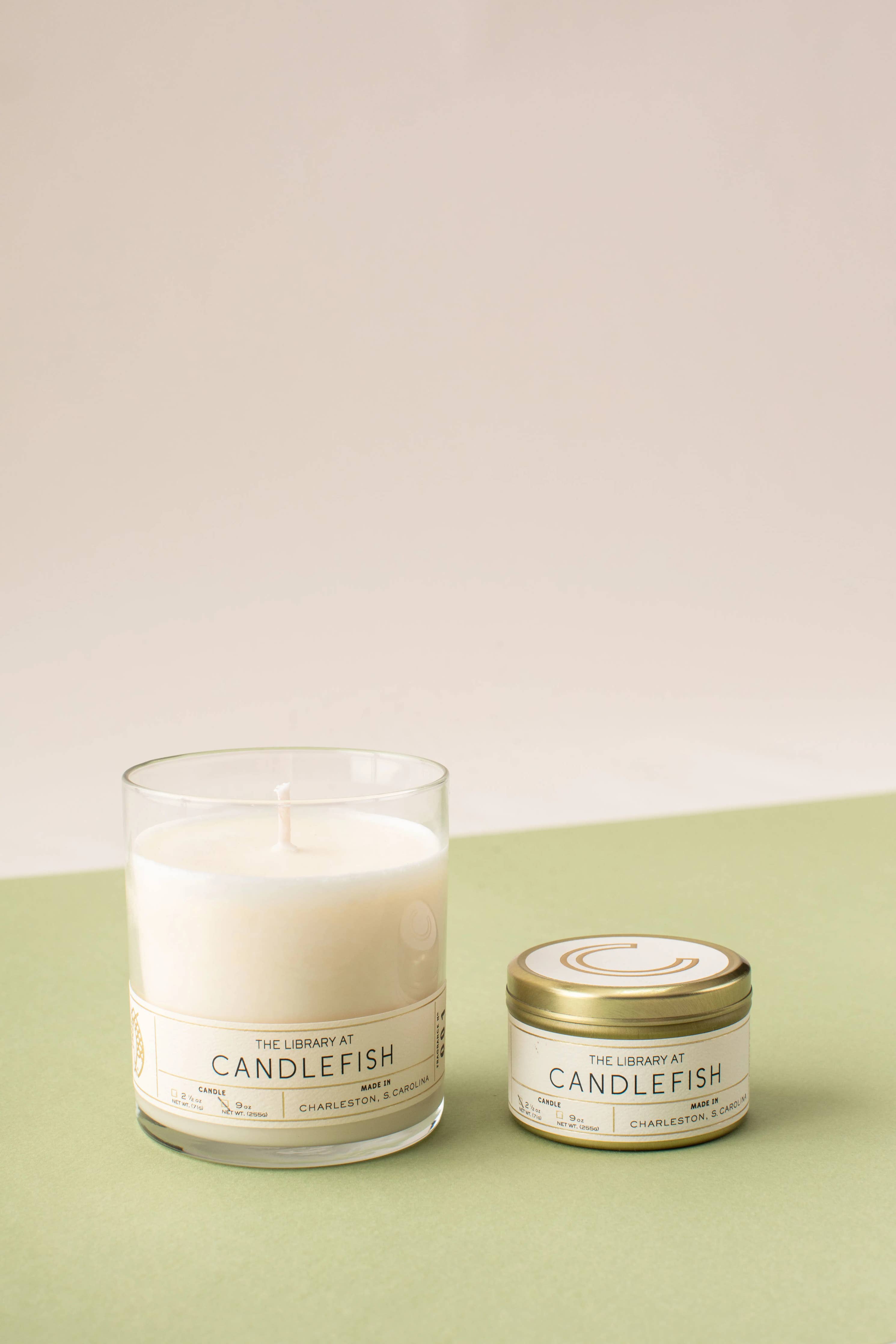 100% soy wax candle with a burn time of 15-20 hours for 2.5 ounces and 60-70 hours for 9 ounces.