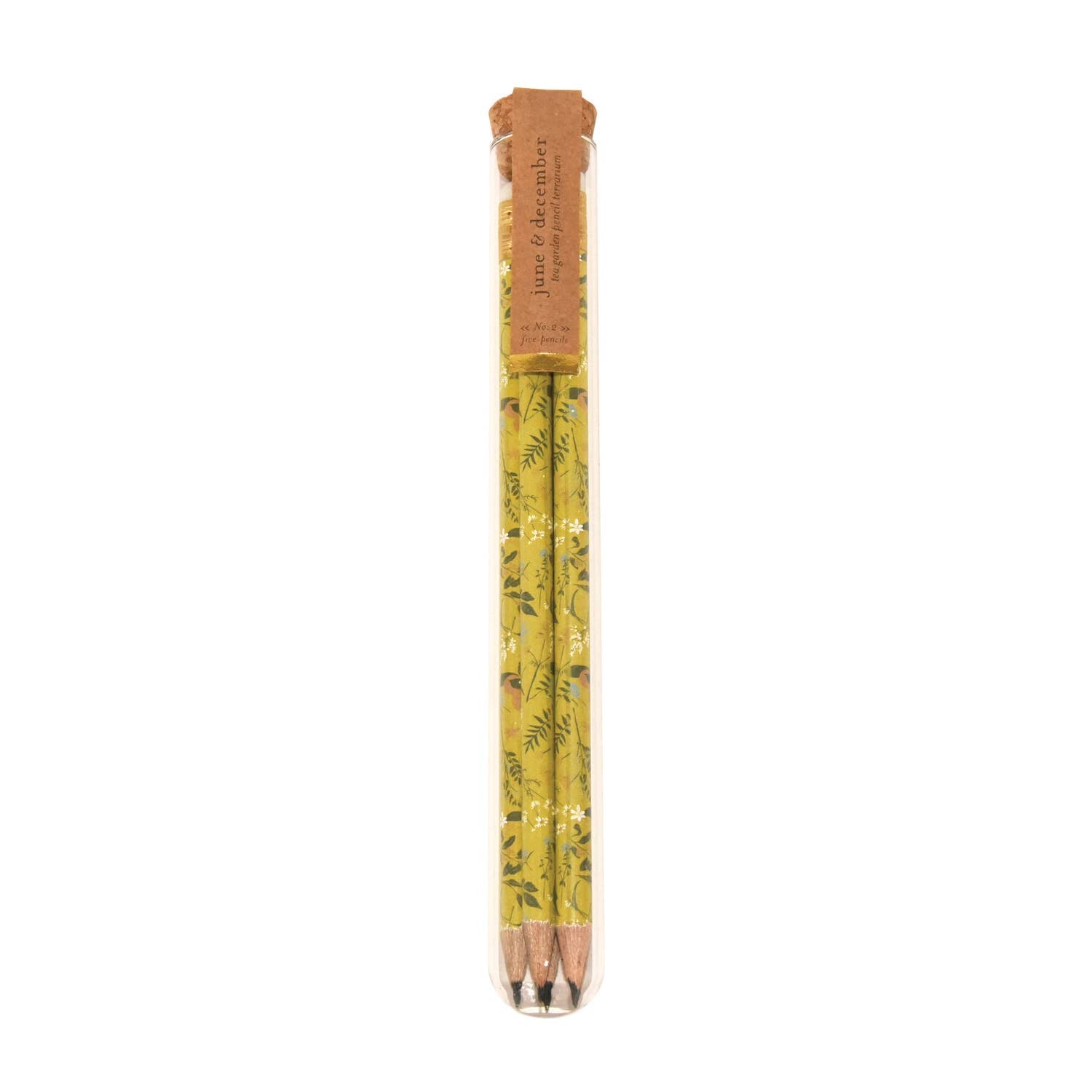 - Size : 8”x1” - Details : five round, pre-sharpened, No. 2 pencils included in each - Packaged : In reusable glass vase, ready to display - Made : June & December / USA Created with the environment in mind, June & December designed their glass pencil terrariums to make the packaging as functional as the pencils inside. Turn the glass vase into a dreamy tiny terrarium, encapsulate your nature finds, use it as a vase, or for propagating your plant pretties! Pairs with their reclaimed wood bases.