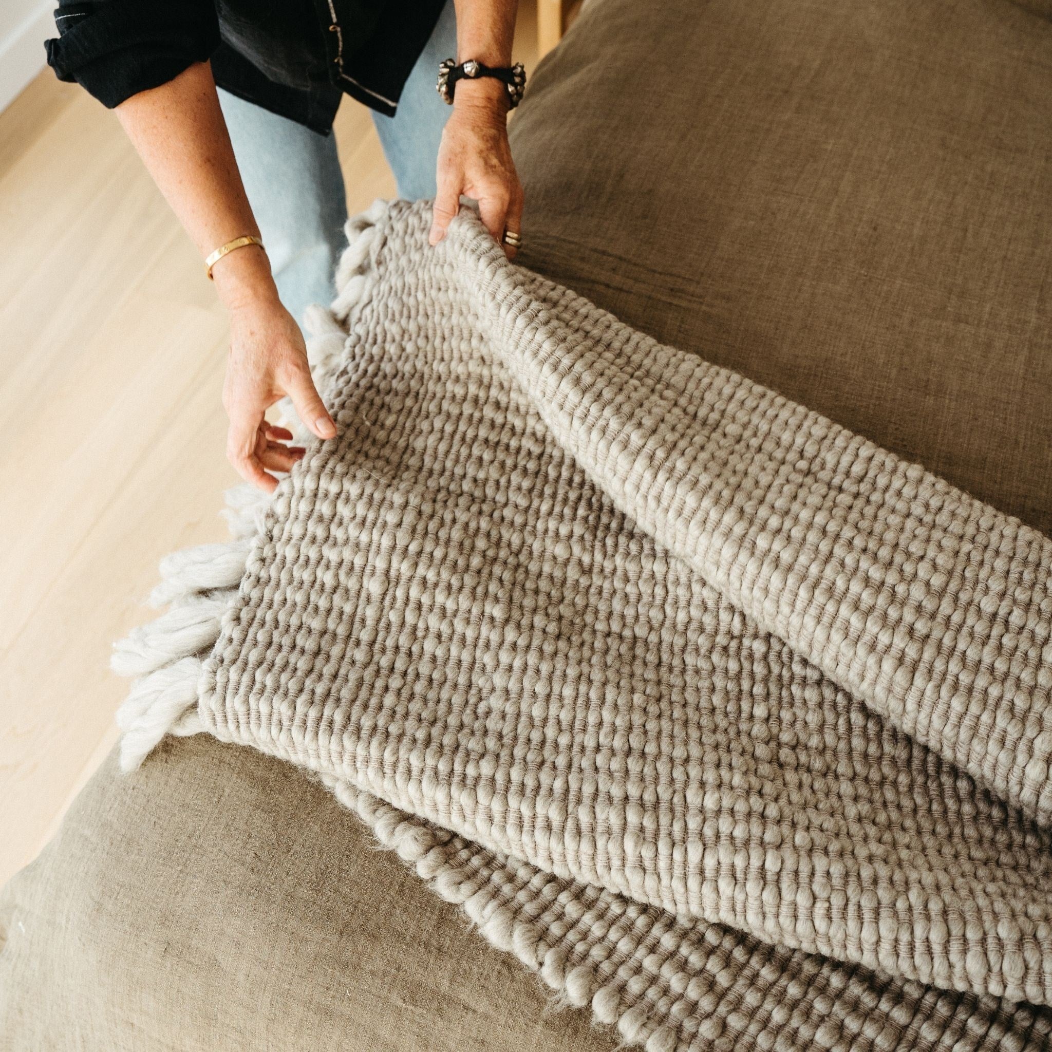 With a seriously chunky knit, hand knotted chubby tassels and a feathery soft feel, the woolen Verbier Throw will be one you reach for time and time again. Feel the warmth draped over your lap while reading or arrange it artfully at the end of your bed for a luxurious welcoming look. Hand Wash.