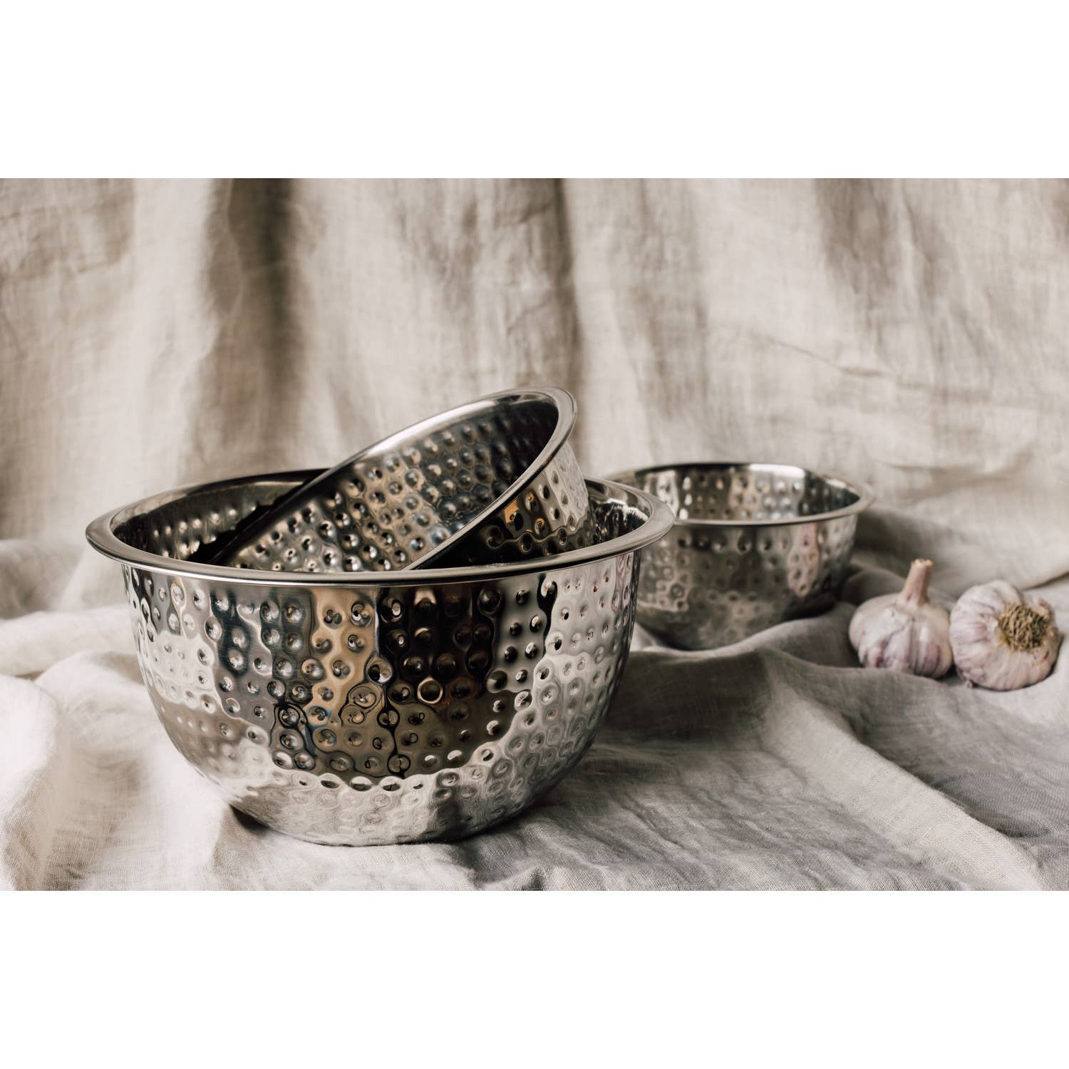 The hammered effect of these pieces adds to their timeless appeal. They do double-duty in the kitchen as durable, everyday items that you will want to leave on display.
