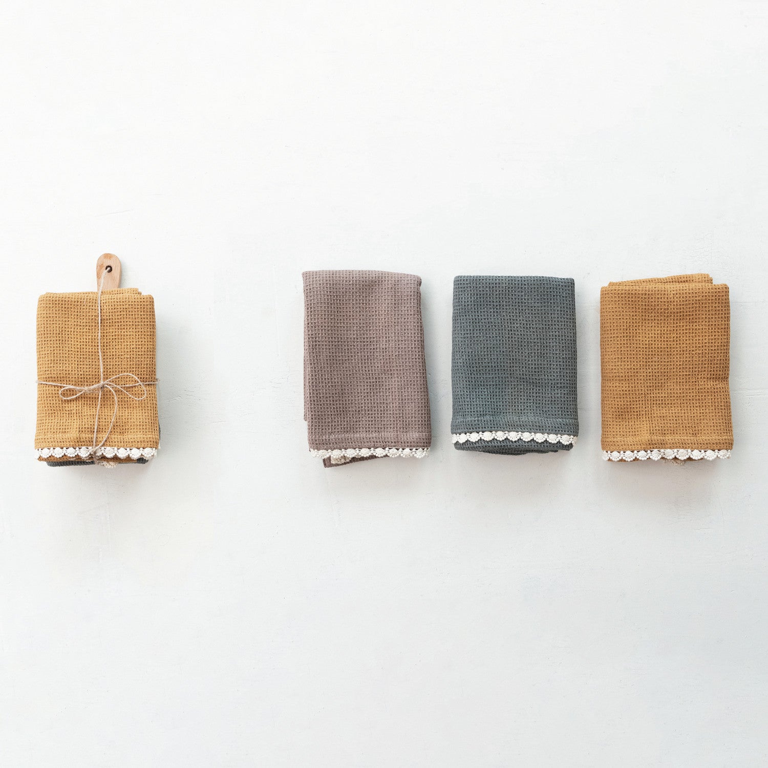 Cotton Waffle Weave Tea Towels w/ Cheese/Cutting Board