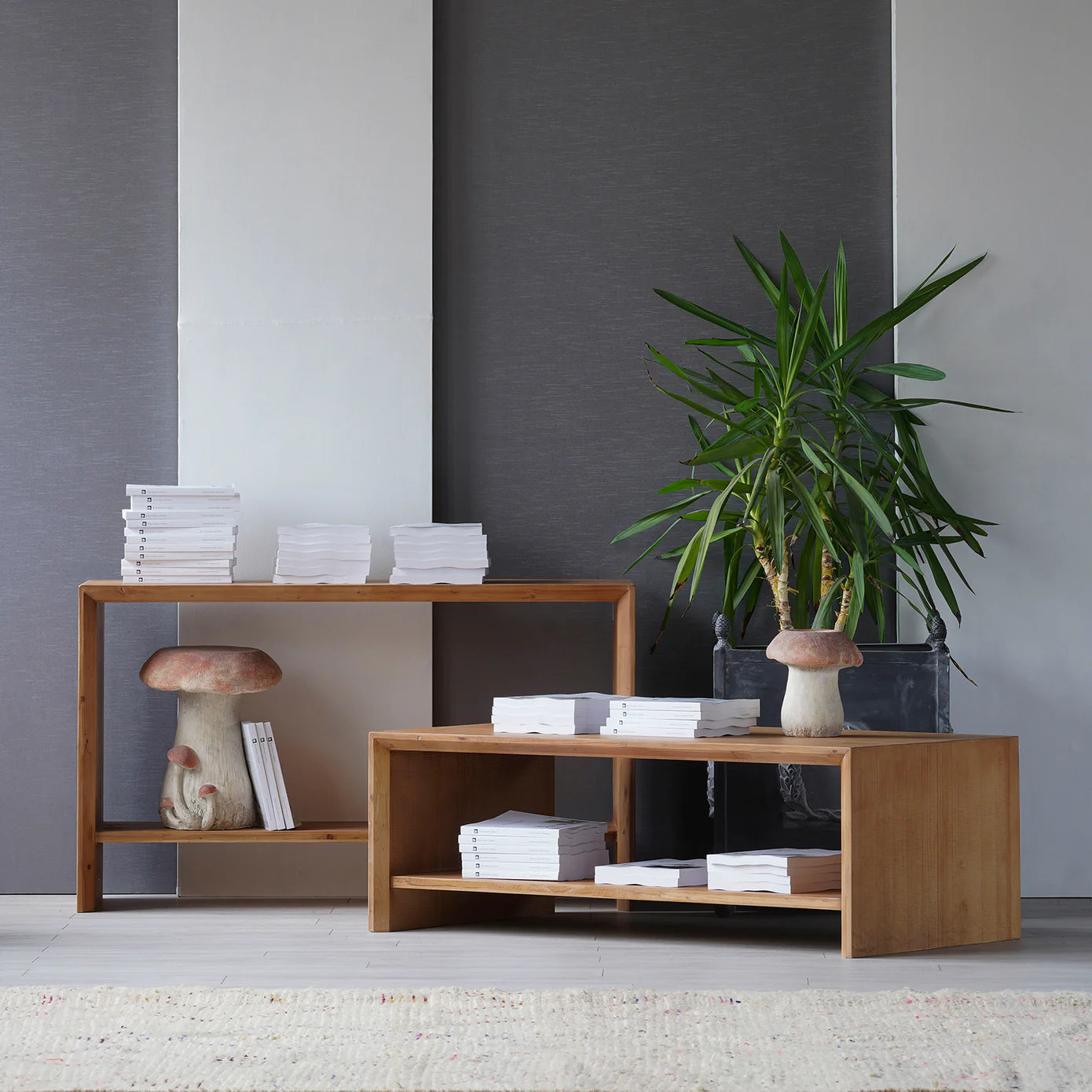 The Lena table is part modern, part Americana with its intentional structure. Crafted from upcycled pine wood with a fresh Light Natural finish, the Lena Table is a solid, wide rectangular table with an open lower shelf. This easy-to-clean surface is perfect for spaces with high traffic.