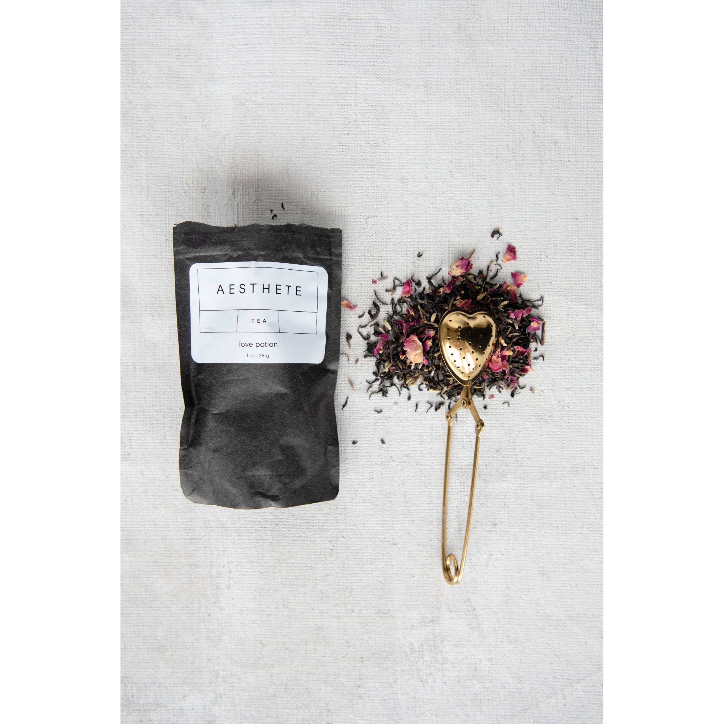The person with champagne tastes prefers loose tea instead of tea bags. For that person, this stainless steel strainer is the perfect choice with its heart shape and rich gold finish. The unique design will hold the sides shut until you squeeze the handle to open i