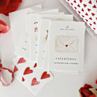 Send sweet valentines to your loved ones, classmates, co-workers, neighbors, and more. The mini valentine cards feature a charming watercolor illustration of valentine-y items on the top with space to fill in 'to' and 'from'. Sweet little envelopes and heart stickers for sealing are included.