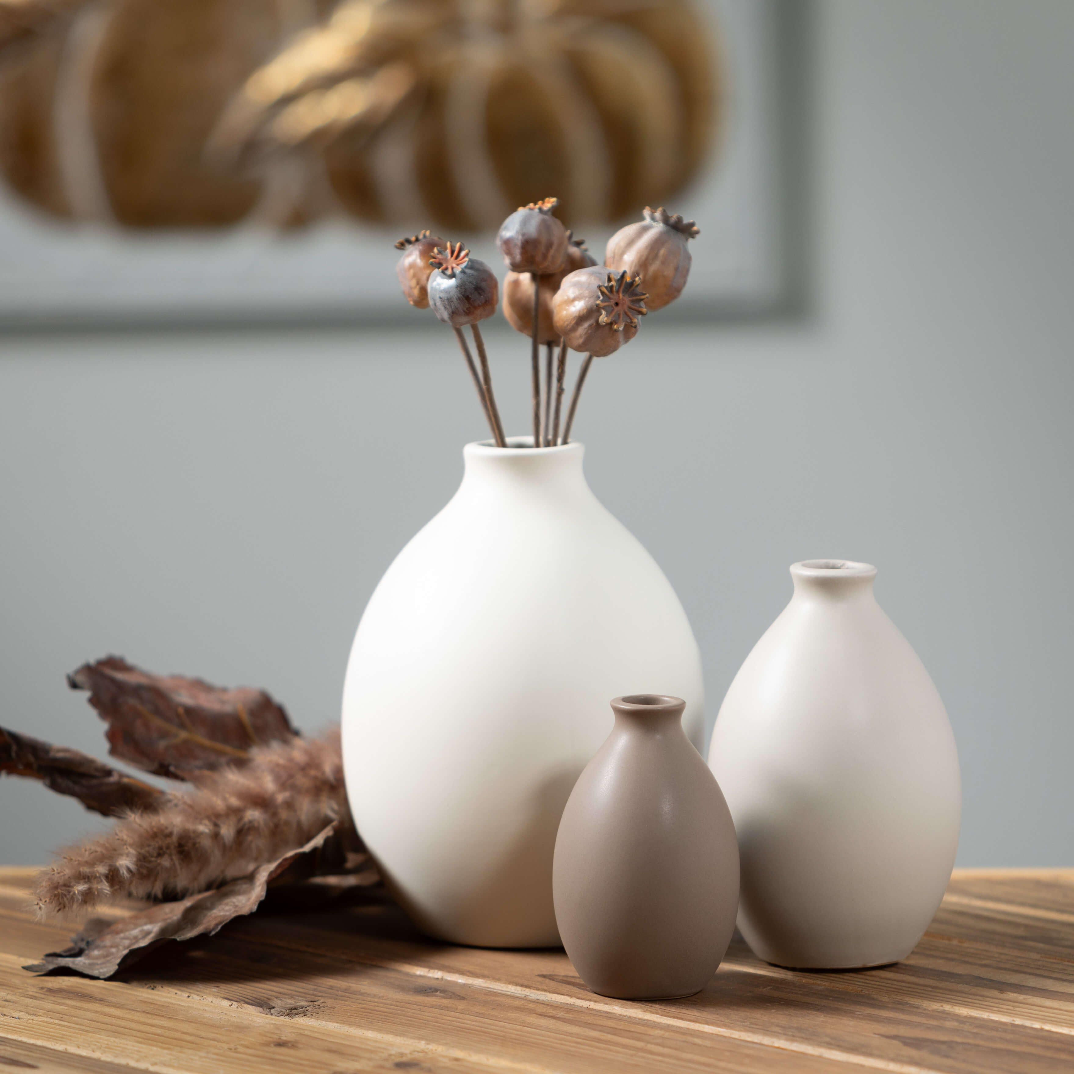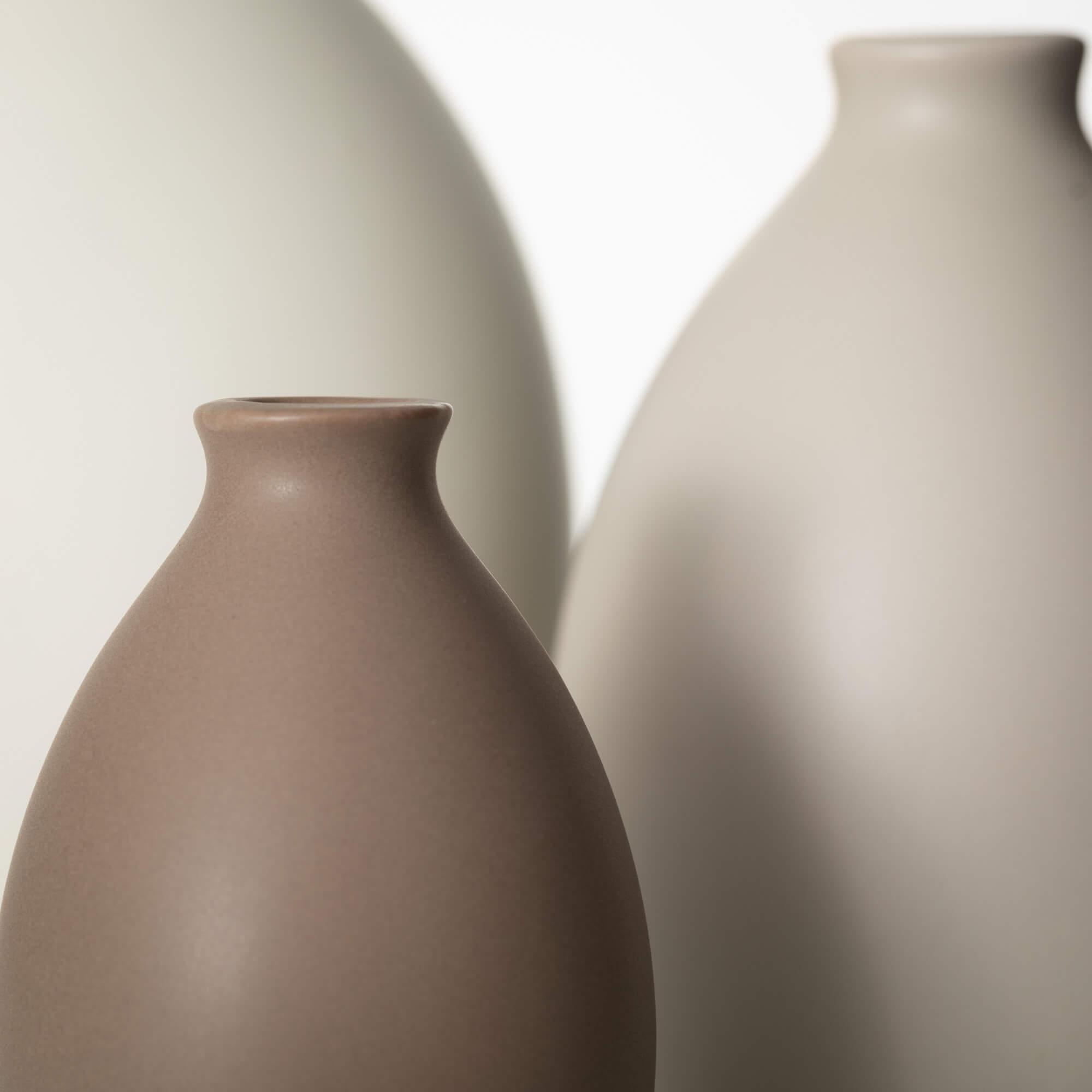 Perfect for year-round display, fill this trio with your favorite seasonal foliage and use them to accent a living room, bedroom, or guest bath. Display this group of gray and brown vases together or individually.