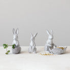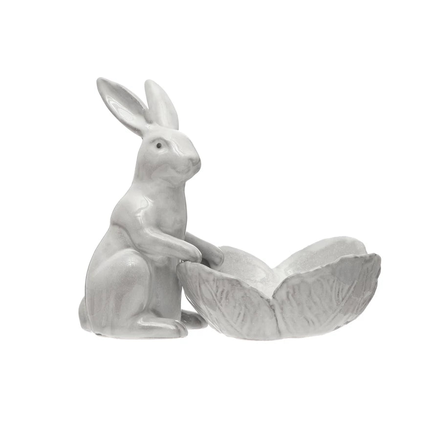 Charming stoneware rabbit bowl brings whimsical character to any space. This delightful piece features a rabbit figure paired with a flower-shaped bowl, perfect for holding small items, trinkets, or decorative accents. Measuring 8-3/4" long by 5-3/4" wide by 7-3/4" tall, it's sized just right for tabletops, shelves, or display surfaces. Handcrafted stoneware construction ensures durability and a natural, artisanal finish. An ideal accent piece for nature lovers, garden enthusiasts, or anyone seeking a touch of playful elegance in their home décor.