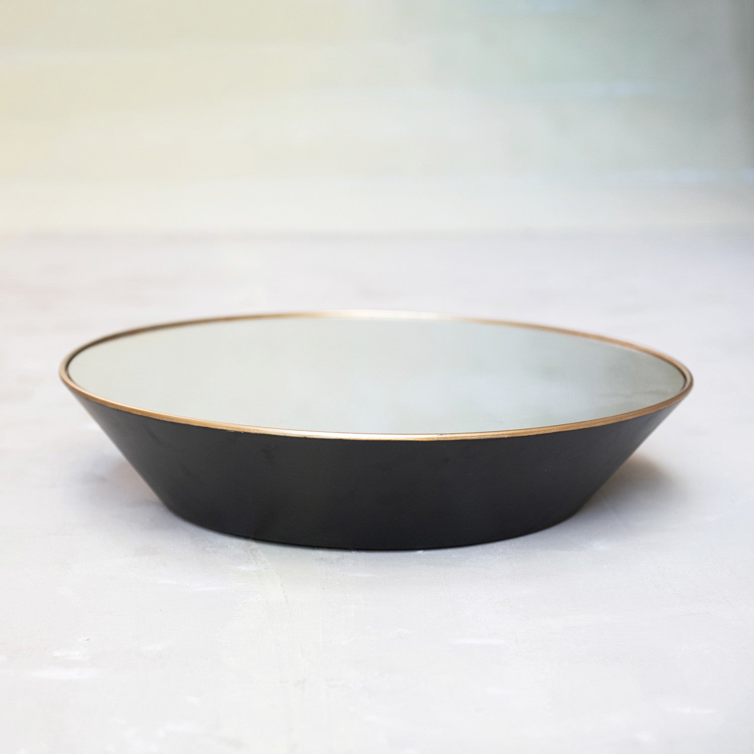 24" Round x 4-3/4"D Metal Deep Framed Wall Mirror, Gold Finish & Black