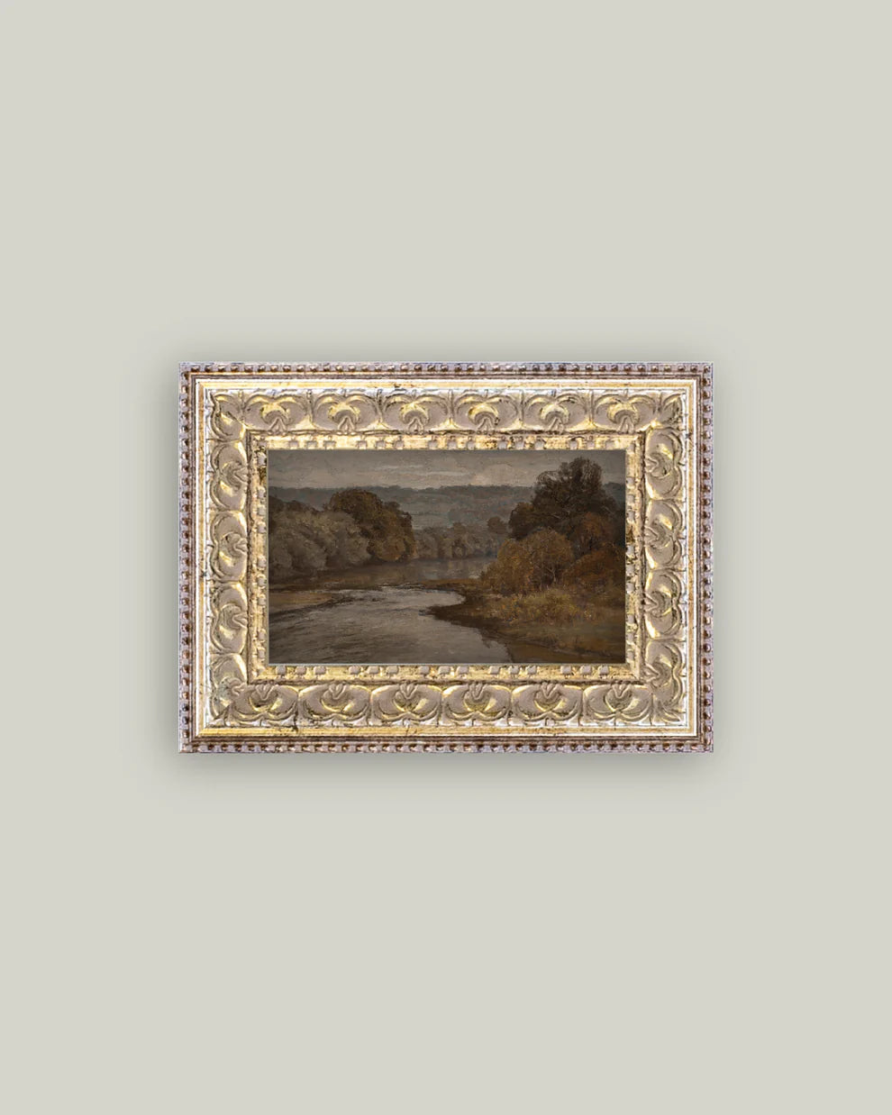 This Autumn River Art Print showcases a vintage landscape rendered with meticulous detail on raw canvas, highlighting the natural texture for an authentic and timeless appearance. Carefully mounted within an antique frame, the piece evokes a sense of history and craftsmanship that complements both traditional and contemporary interiors. Its warm autumnal hues and serene river scene bring a touch of nature’s tranquility to any space, making it an ideal choice for collectors and enthusiasts seeking a refined and enduring artwork. Perfect for adding character and depth to living rooms, studies, or galleries.