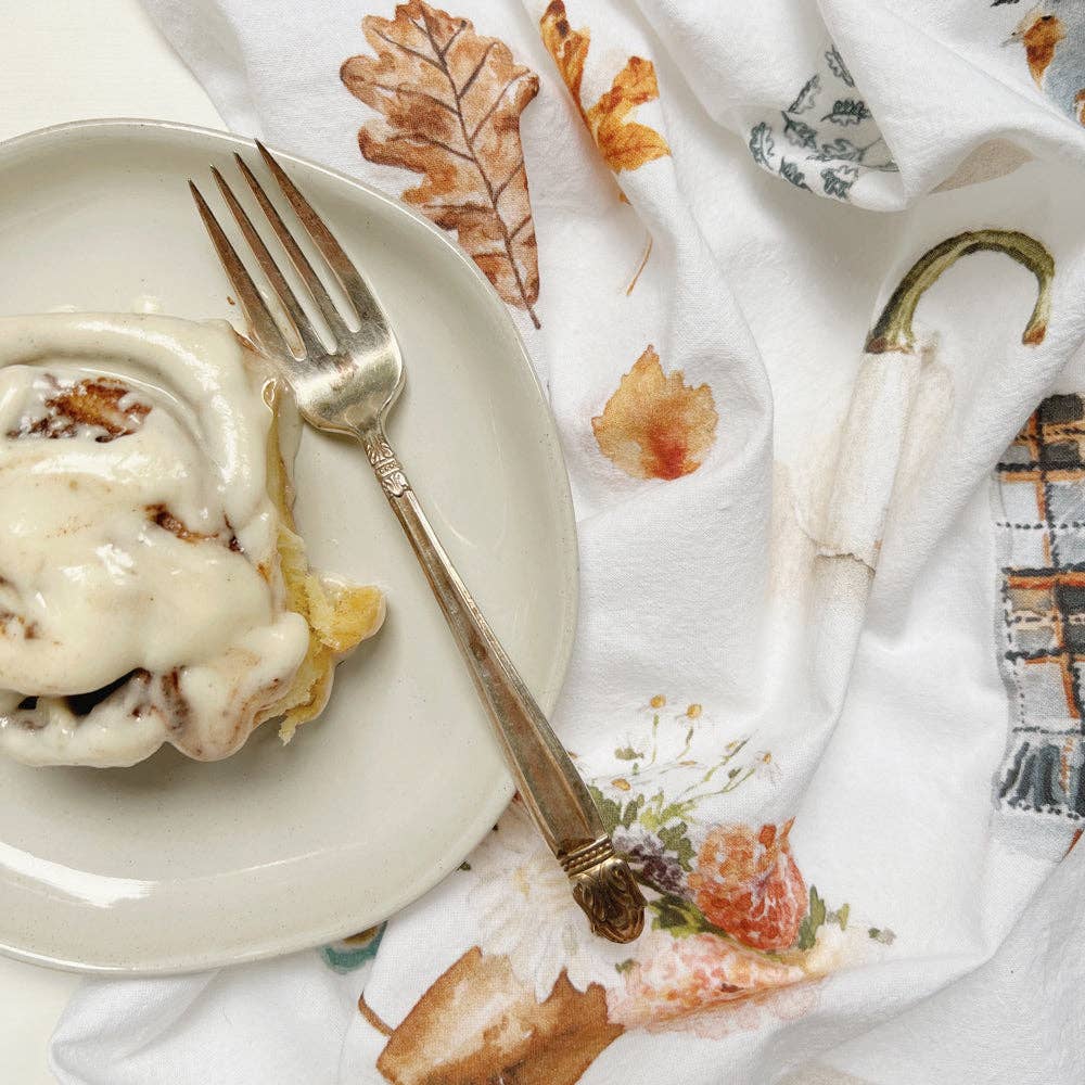 Add a touch of delight to your kitchen with this 100% cotton tea towel. Cozy Fall illustrations cover the towel making it perfect for washing up, lining a basket, wrapping up treats, or setting out to add seasonal charm to your home.