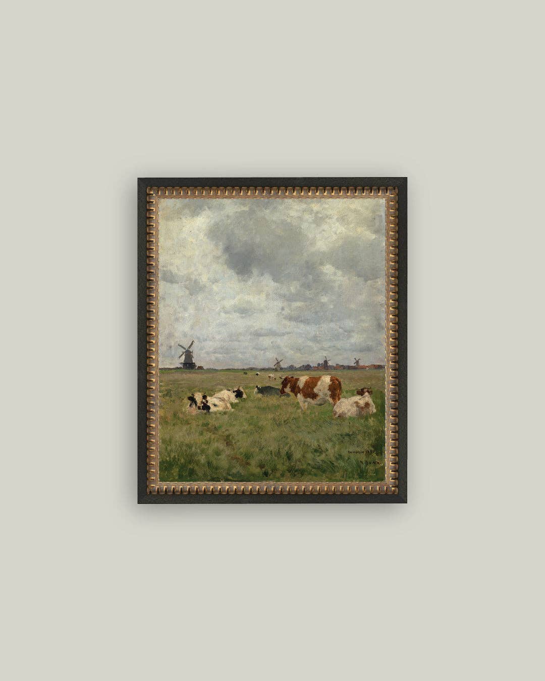 Cattle on the Pasture By Hermann Baisch, 1890 Features: Artwork Material: Printed on premium canvas fabric for a lasting, textured finish. Measurement reflects the outside dimensions of the frame. Frame Details: Handcrafted ornate frame adds classic charm. Hardware Included: Comes with a paper backing and hanging hardware for easy installation. Glass-Free Design: Keeps the artwork lightweight and true to its original texture. Made in the USA: Proudly crafted with quality and care. Care Instructions: Keep canvas dry to maintain its quality. If smudged or dirty, gently wipe with a dry, soft cloth.