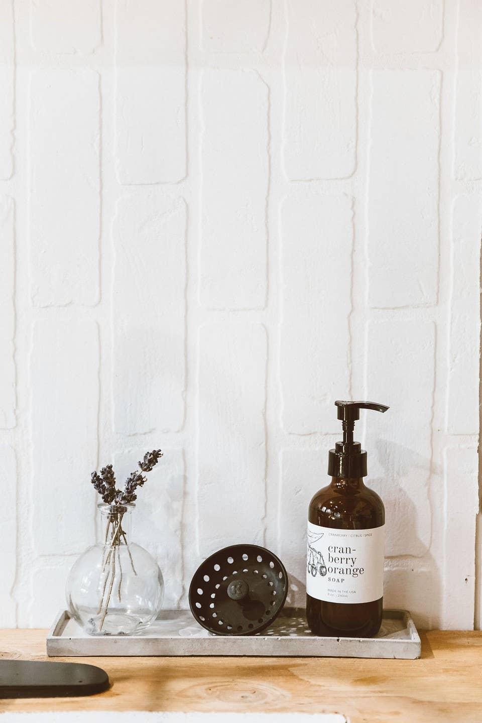 Relaxing at home to the sound of the fireplace crackling and soft holiday harmonies. Tart cranberry and zesty citrus counterbalance a blend of warm spices to create this quintessential seasonal scent. Features: Our 8 oz liquid soap is made to create a sudsy experience that is as cleansing as it is hydrating. Available in beautiful 8 oz glass bottles, it’s the perfect accessory for your sink. Ingredients: Deionized Water, Sodium Laureth Sulfate, Glycerin, Cocamidopropyl Betaine, Cocamide Dipa, Citric Acid, Sodium Chloride, Tetrasodium EDTA, Methylchloroisothiazolinone, Methylisothiazolinone, Essential Oil Infused Fragrance oils