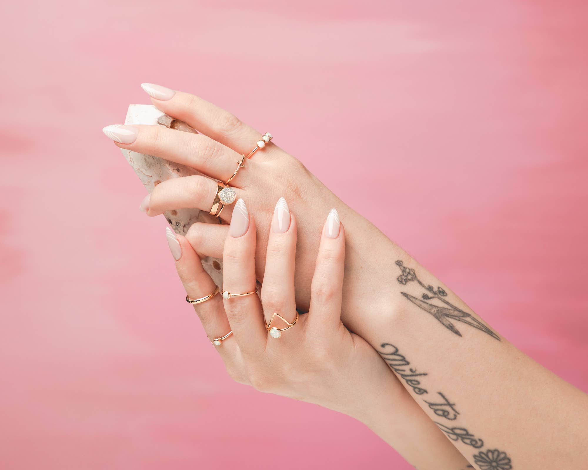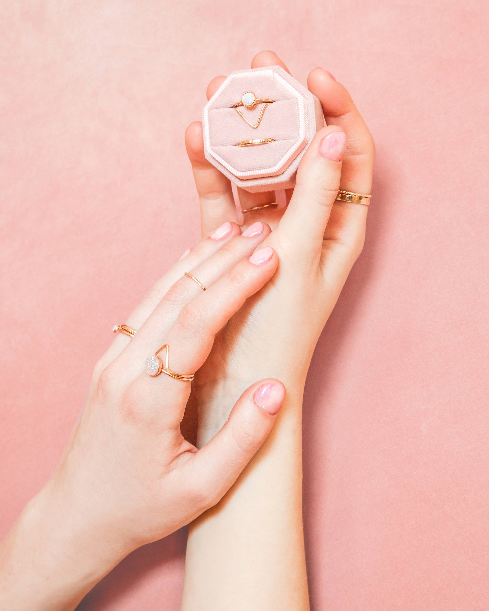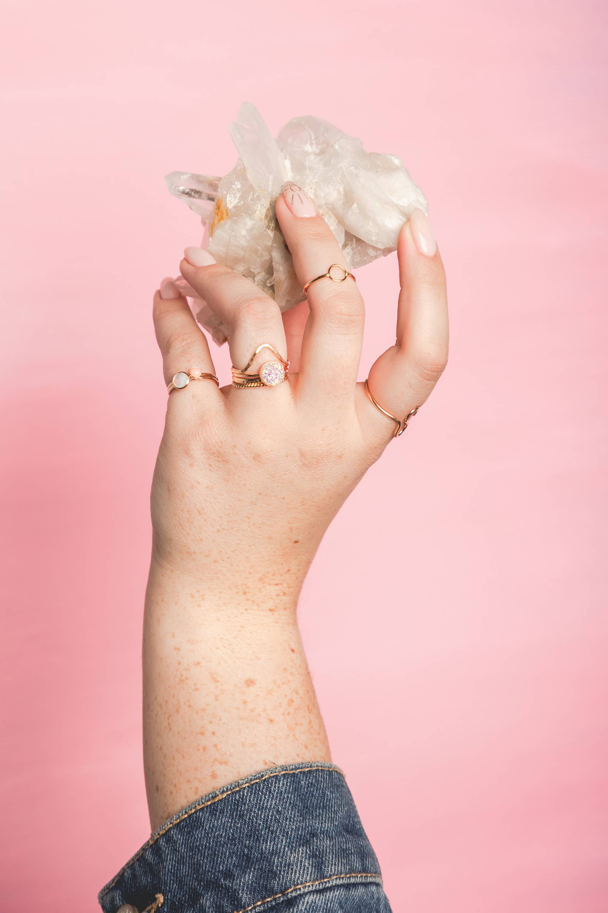 The curve ring is the perfect piece to add an accent to your rings or a great way to start your collection! This dainty ring is 1mm in thickness and hand forged in 14k goldfill with hammered textured.