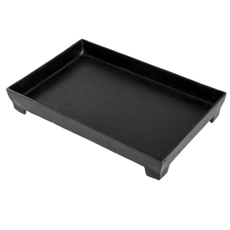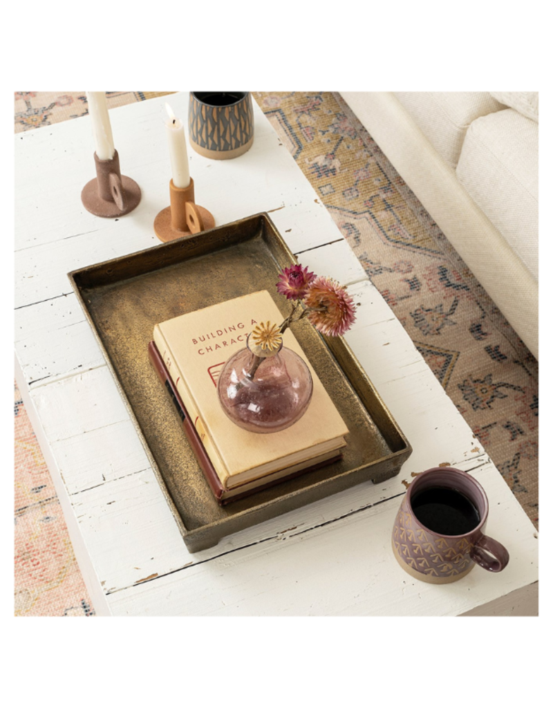 Heavy in your hand, our Footed Trays are a favourite catch all for jewelry, pockets full of change, or car keys. These sleek mixed-metal aluminum trays excel in your entry way, or to organize your bedside table. Food Safe.