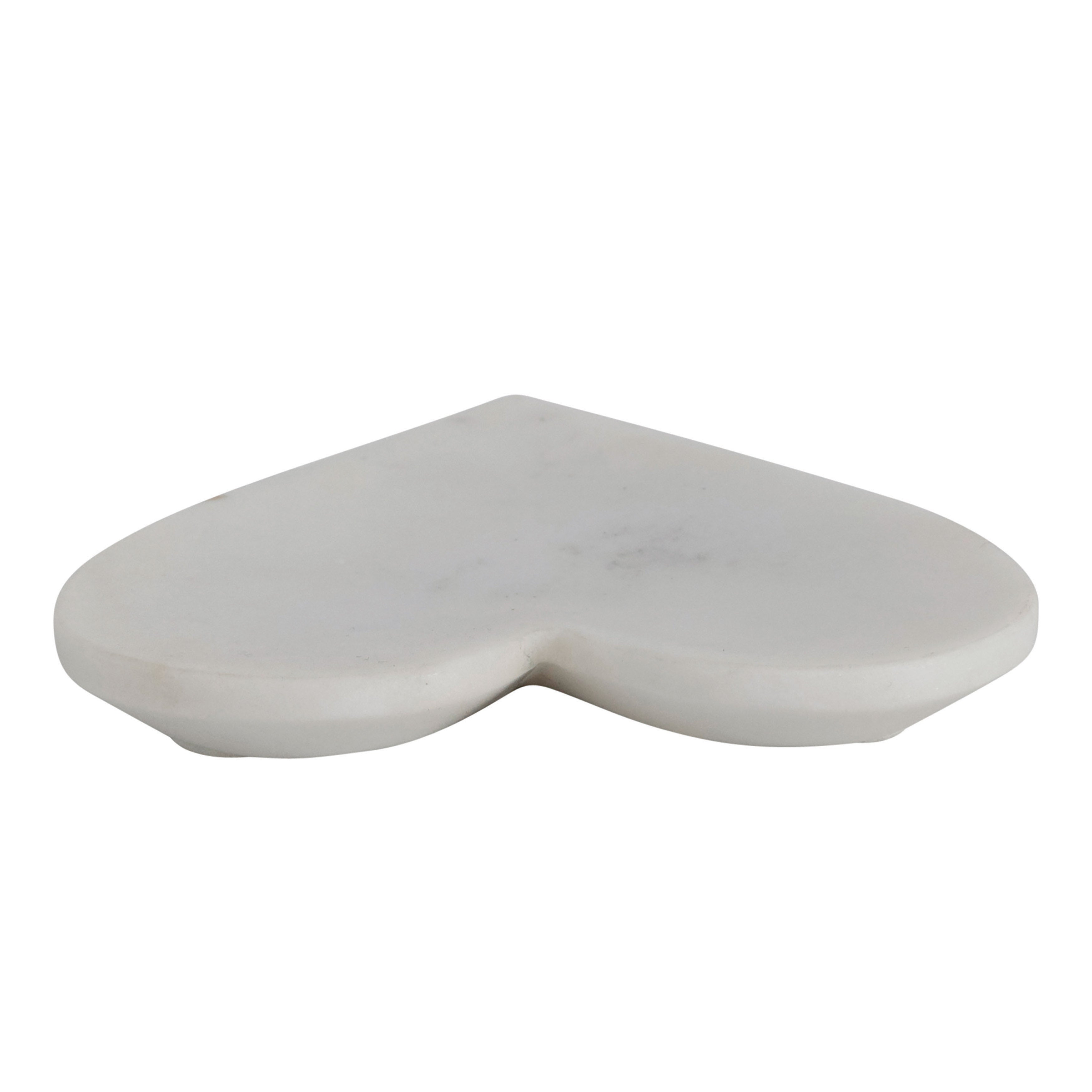 This charming decorative dish features genuine marble construction carved into a romantic heart shape. Decorative heart shaped marble dish in white naturally variating finish. Arrange rings and small jewelry inside and place on a vanity, or beautifully blend into a whimsical tablescape. Made from 100% marble
