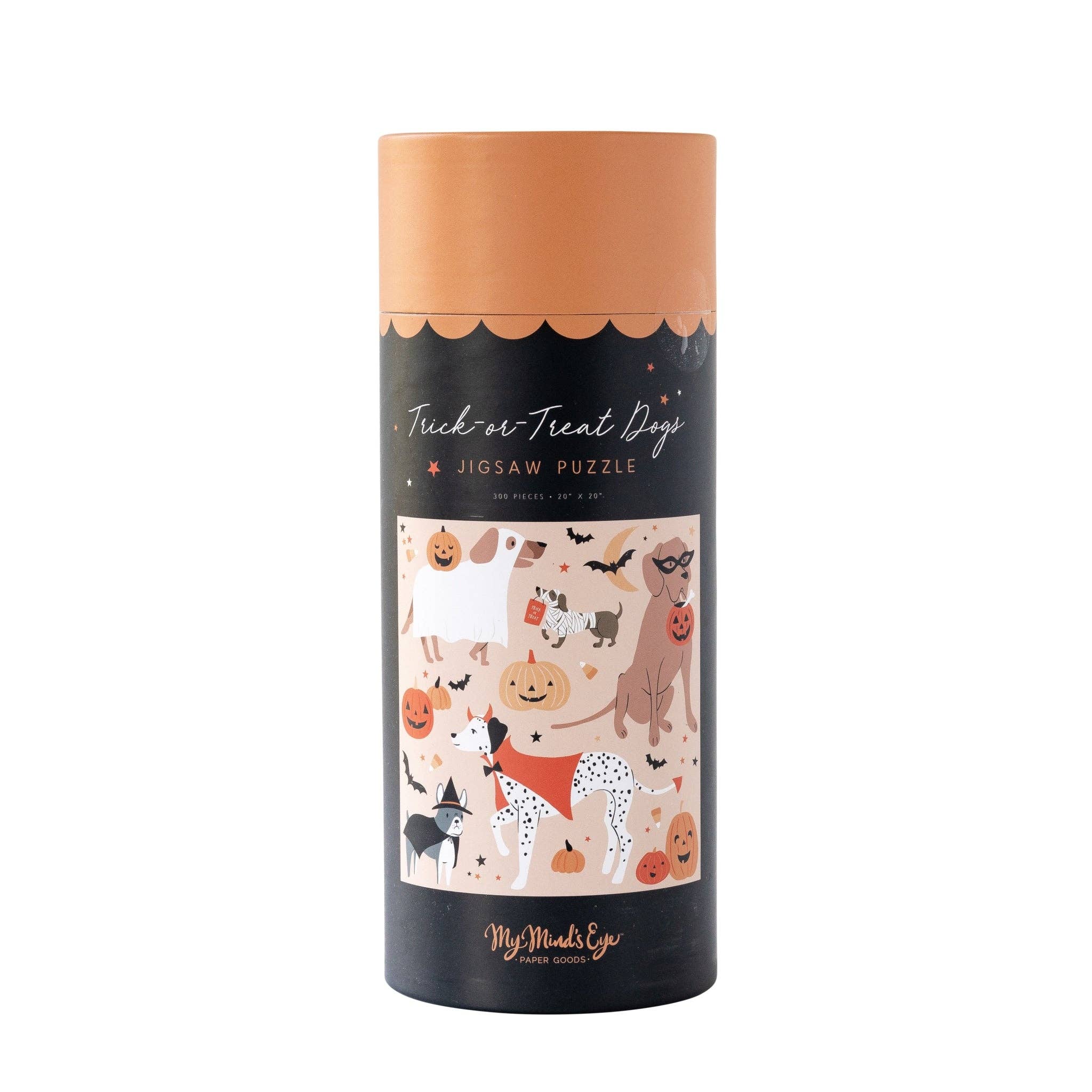 Delight in putting together the 'Trick or Treat Dogs' 300-piece shaped jigsaw puzzle. Beyond a simple pastime, this puzzle highlights refined design and meticulous craftsmanship. Perfectly suited for adults, it offers an engaging and enjoyable challenge.