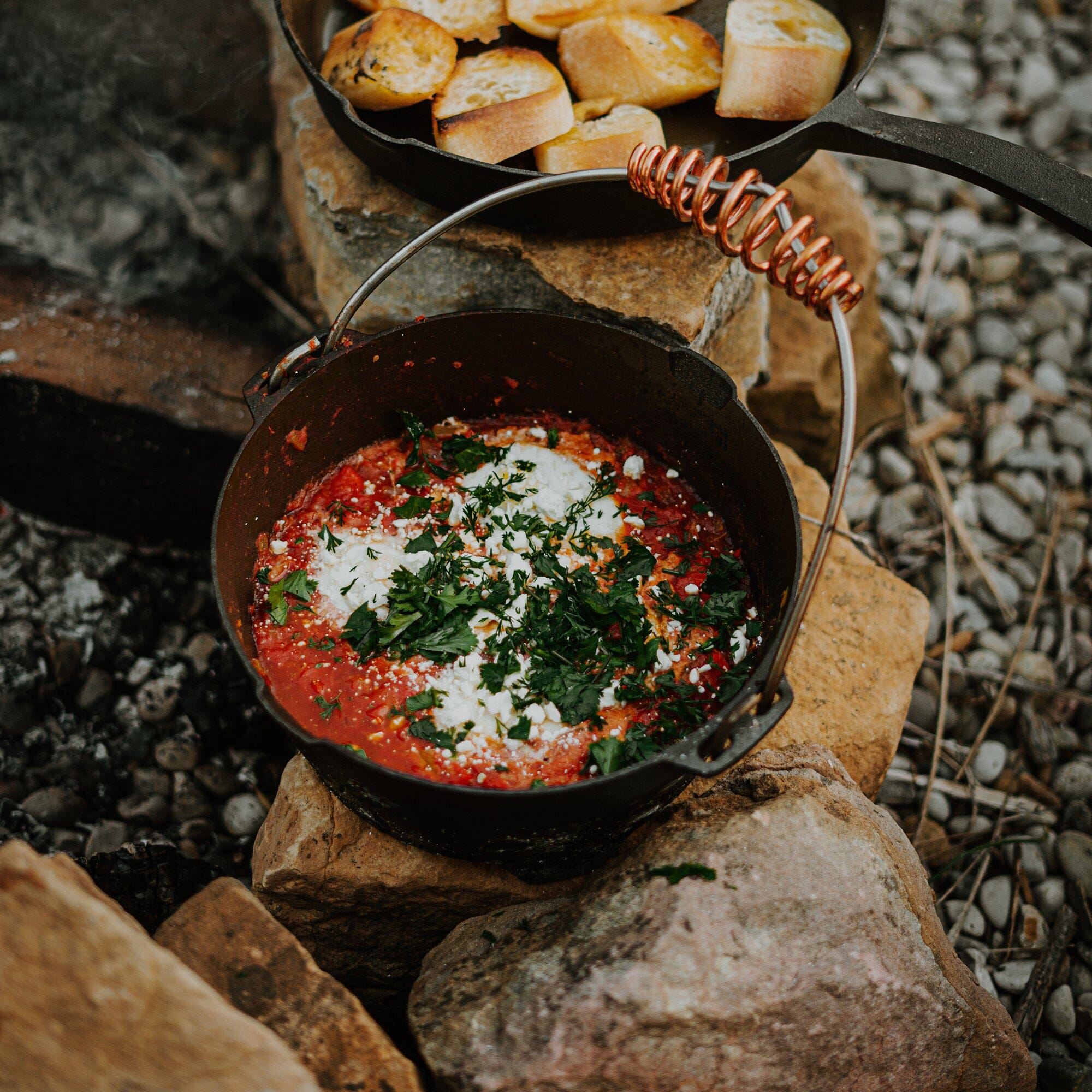 Meet the Polished Cast Iron Dutch Oven. Inspired by Japanese cookware and thoughtfully designed for open fire use, this dutch oven is the deluxe cast iron pot you've been searching for. Included lid, circular polished interior, better heat distribution, extended handle, and copper accents make this a dream to cook with--from camp to kitchen. Pre-seasoned with organic sunflower oil and ready to use right out of the box.