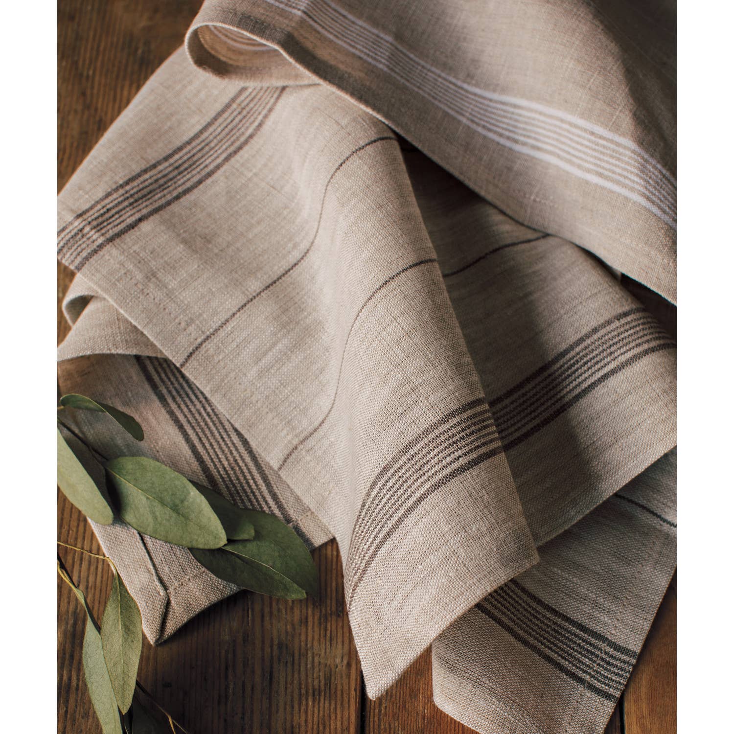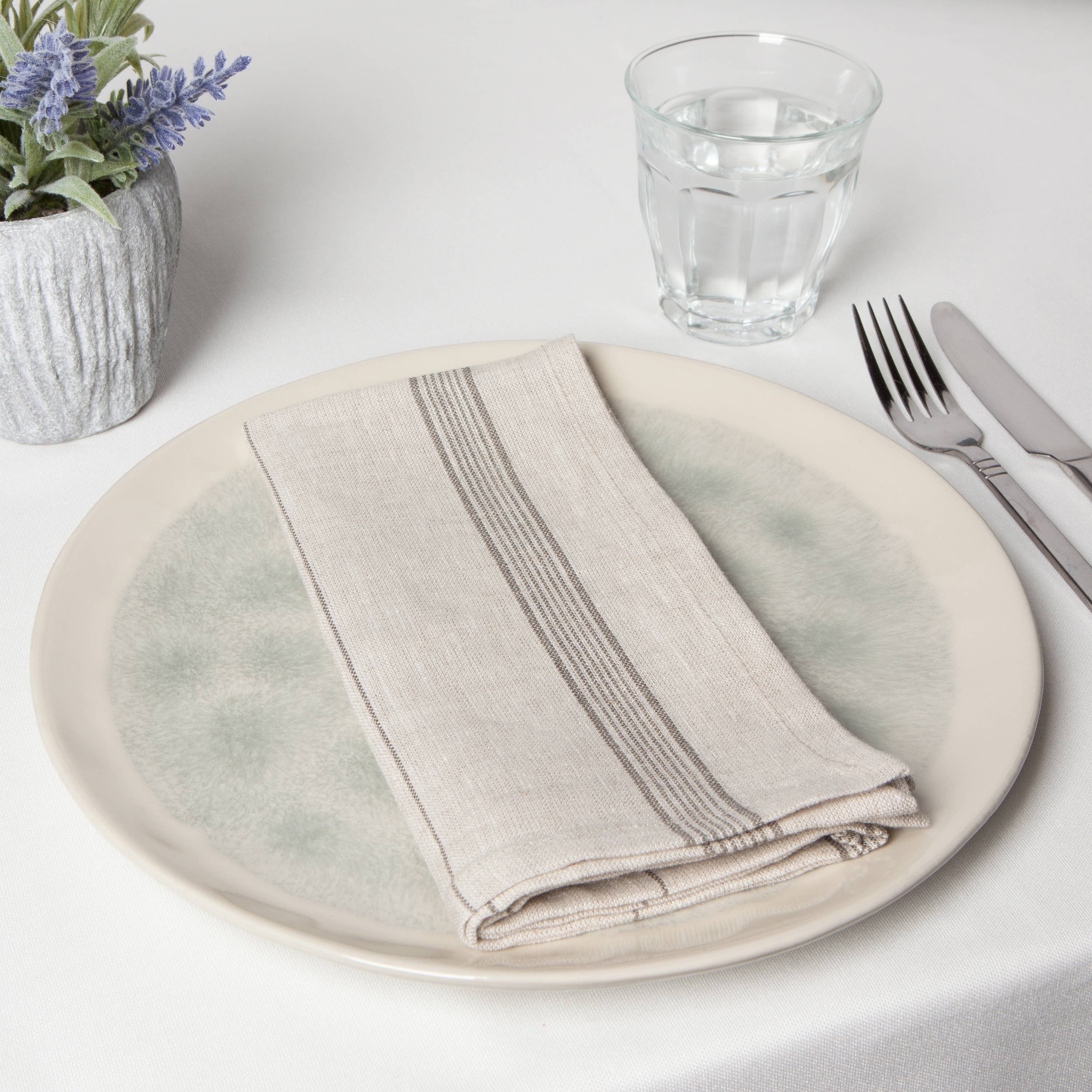 In shades of white, fine bands are woven into these subtly chic linen napkins. Linen is woven into the fabric of human history. It's a material that continues to stand the test of time. It's durable, yet gets softer and more absorbent with every wash. It's also sustainable, as crop production uses very little water.