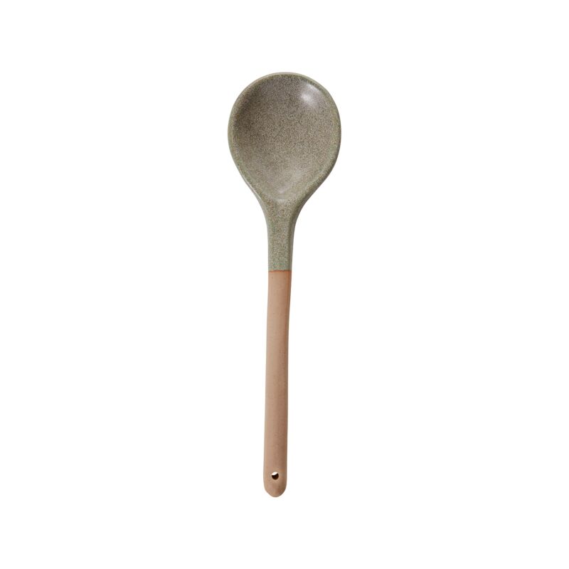 The Simplistic Spoon is a twice fired ceramic spoon, in speckled clay and matte brown glaze. Food safe and stylish yet understated, use the Simplistic Spoon to bring an artisan look to your table and kitchen.