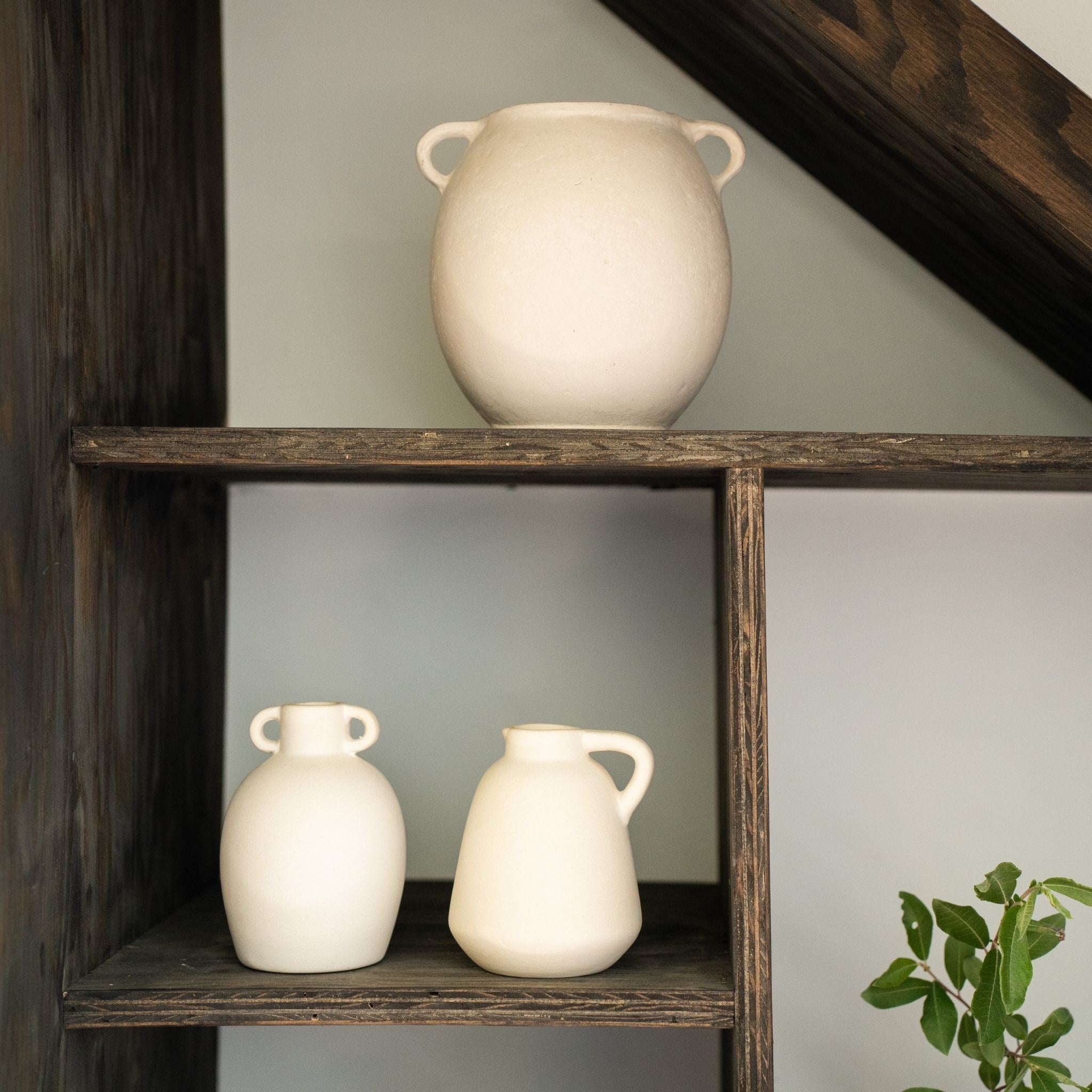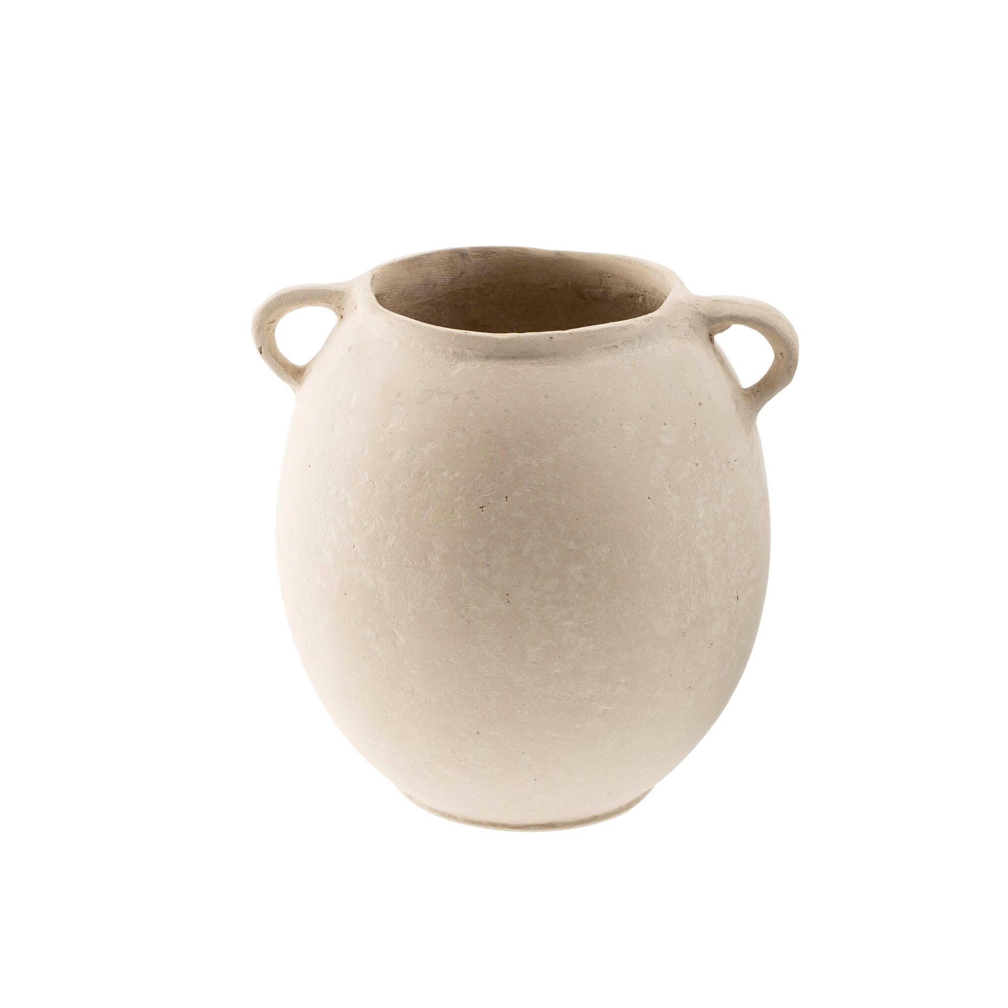 The Solace Paper Mache Vase is handcrafted from eco-friendly papier mache and has a chalky, limewash like texture. Its alluring rounded profile and versatile neutral coloring make it an effortless addition to side consoles and bookcases, infusing character and style. Made from recycled newspaper, they are entirely natural and sustainable. First the newspaper is mixed with water, then chalk and tree sap crystals are added to turn the substance into a clay-like material. The pulp is kneaded into chapati-like forms, then rolled and moulded into the sculptural objects we love. There is no firing, no power used, and the process is entirely eco-friendly. Each piece will have subtle differences in finish and these variations are part of the handmade appeal. Porous in nature, papier mache should not be exposed to liquids.