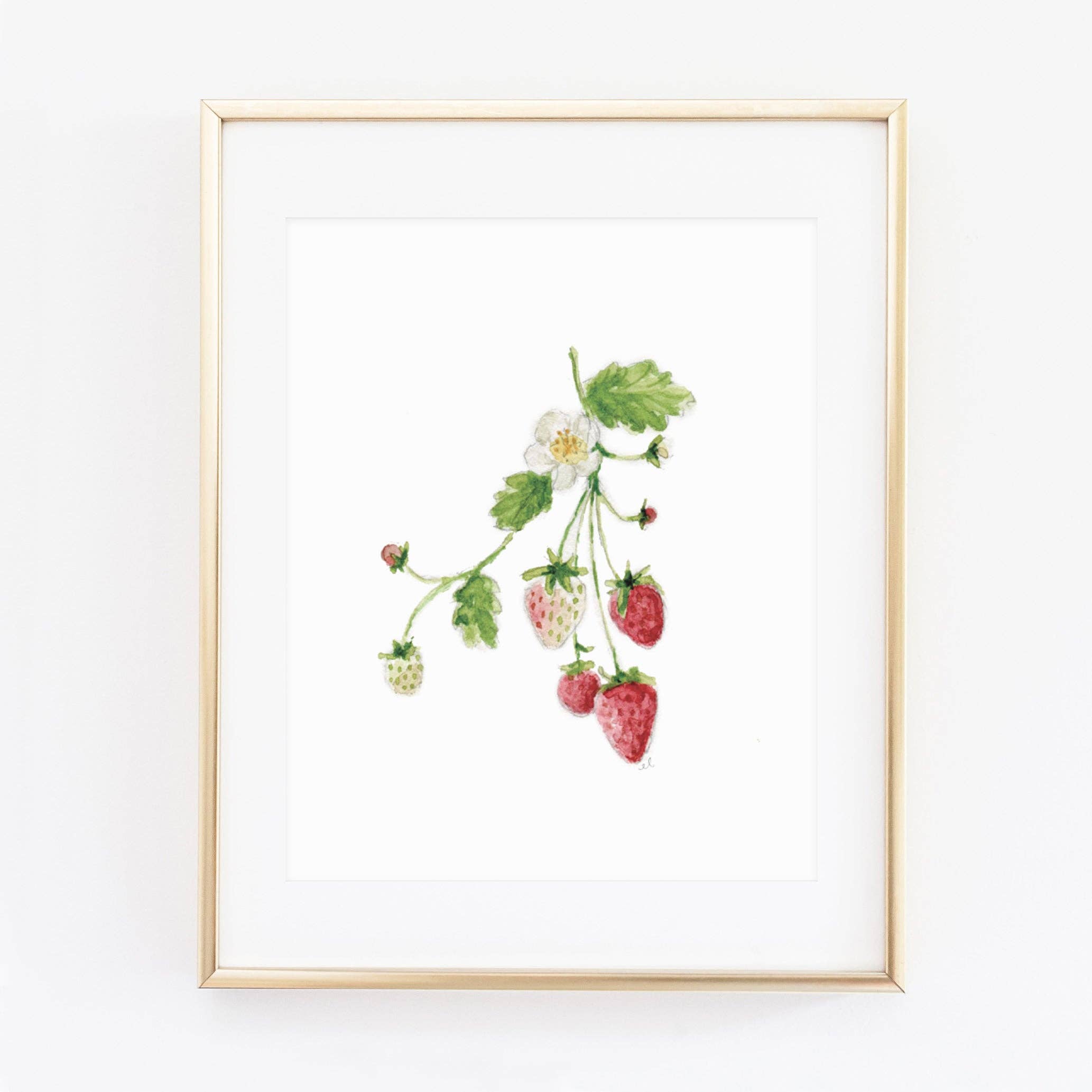 Bring vibrant botanical charm into any room with this captivating strawberry art print. Featuring an original watercolor composition by Emily Lex, this 8"x10" piece showcases rich, saturated colors printed on premium superfine paper that captures every delicate brushstroke. Each print arrives safely nestled in a protective sleeve with sturdy chipboard backing, ready to frame and display. Perfect for kitchen galleries, bedroom walls, or anywhere you want to add a touch of natural elegance and artistic flair to your décor.