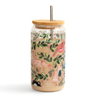 Features | Hand-painted design on glass coffee cup with bamboo lid. Straw included.